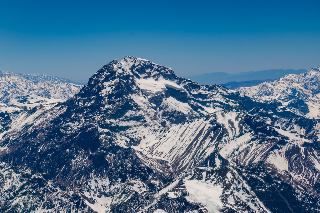 Cerro Aconcagua (6,961 m/22,837 ft): The highest peak in the western hemisphere, as seen from a flight between Mendoza, AR and Santiago, CL