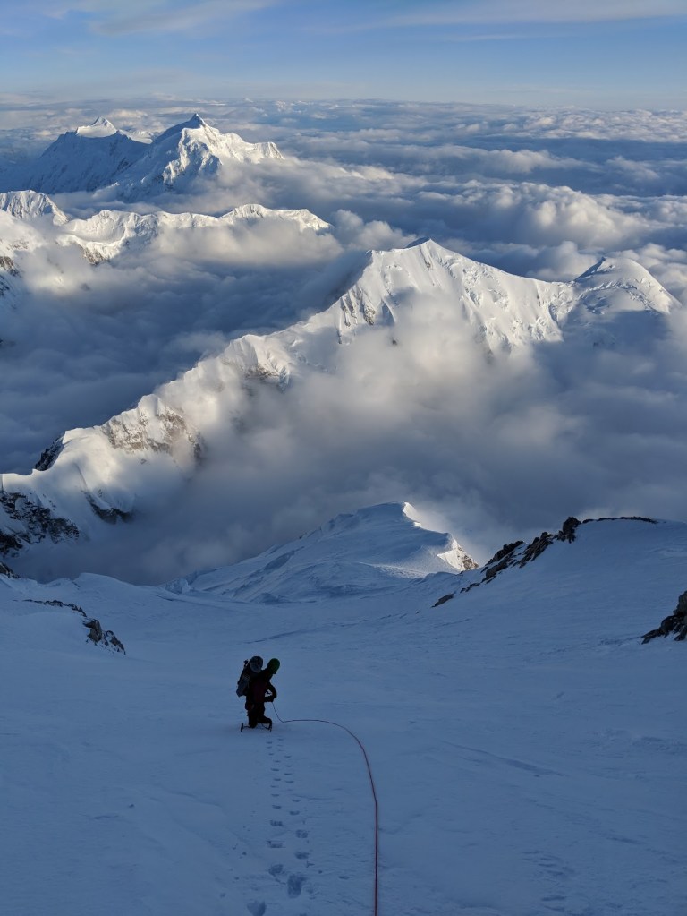 Denali is beautiful, and our acclimation ascent went off without a hitch. We carried gear mainly on skis up to 14 Camp (major camp at 14,000′) and used them for acclimation ascents up to ~17,000′. I would recommend this approach over snow shoes for most. We summited in a push from 14 Camp—skipping the exposure and elevation of 17 Camp, as Caden and I would go on to do on Mercedario in 2022. Again, I find this tactic to be a good decision for most—nothing good happens sleeping above 17,000′ in Alaska.