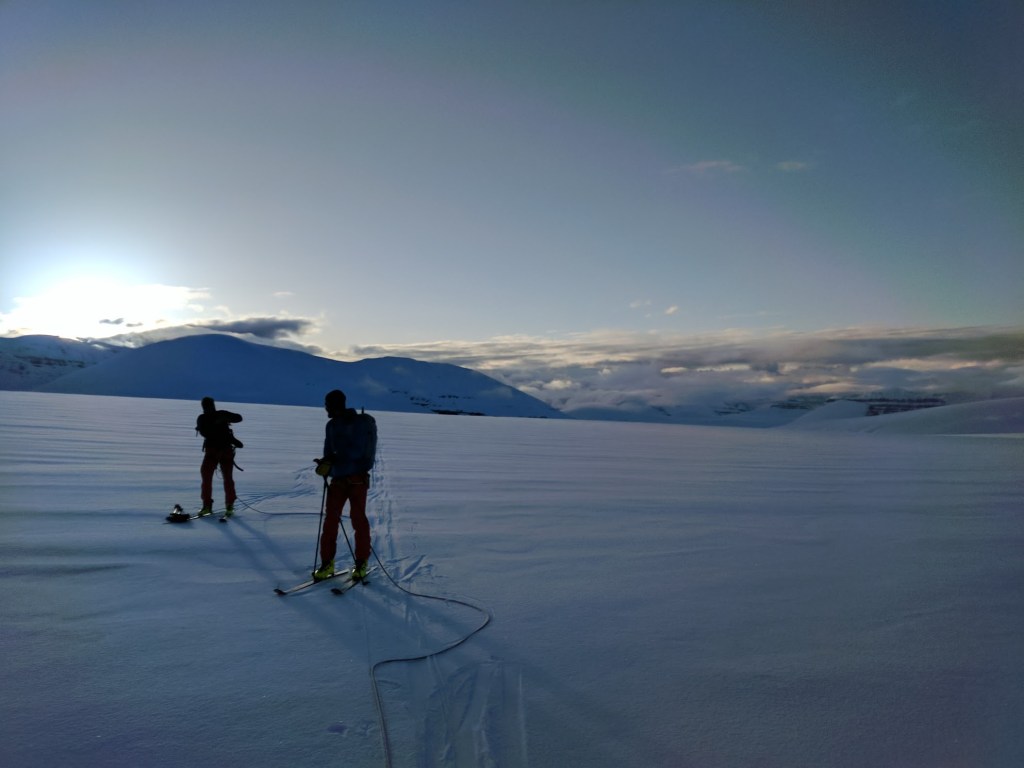 We continued our descent the next morning, beginning with a harrowing ice-axe-in-hand section down the ‘knife edge ridge’. I’m glad we waited until daybreak. Thereafter, conditions improved. The nearly a vertical kilometer of powder gave way to more open slopes of corn snow. We reached the Foraker glacier and found liquid water in a ‘tropical’ melt pond! Altogether, we skied a continuous > 3,300 m (10,800 ft)—amounting to one of the longer ski descents possible on Earth (I think Mount Saint Elias holds this title). We did no rappels and used crampons very sparingly.